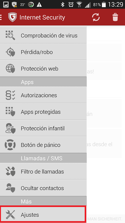 Para poder realizar la instalación de la App de G DATA, es necesario que se puedan permitir la instalación de aplicaciones de fuentes de terceros. Por defecto esta opción está desactivada.