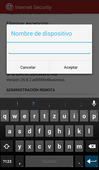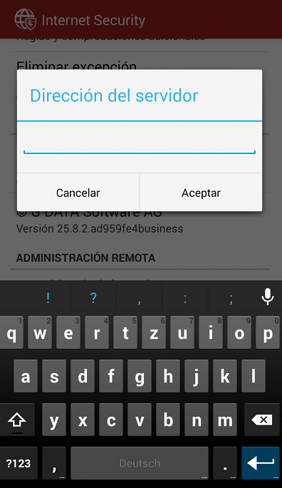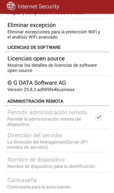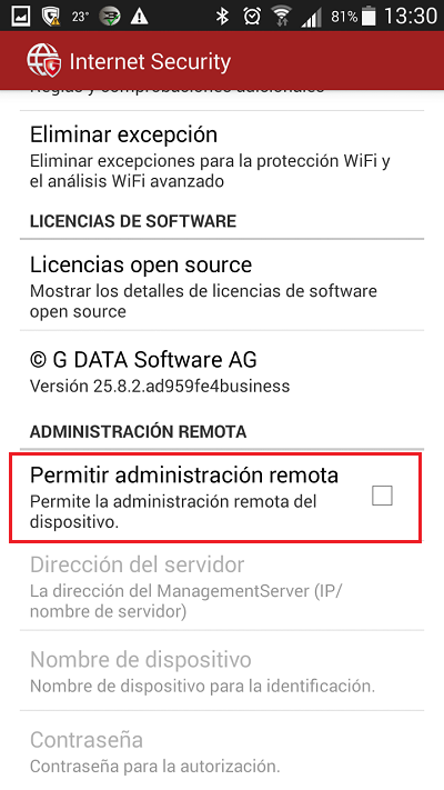 Como configurar los ajustes para una administración remota en G DATA Mobile Client para Android