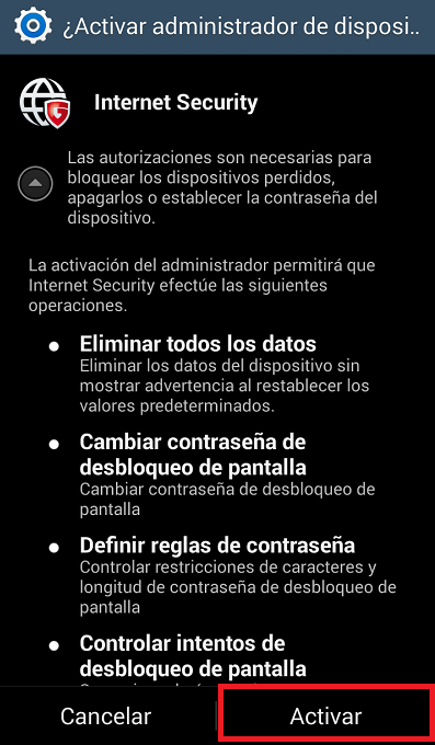 Paso 5. Active la administración de dispositivos para G DATA Mobile Client tocando en Activar