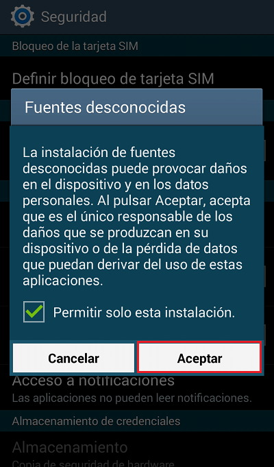 Paso 9. Para poder realizar la instalación de G DATA mobile Client para Android de fuentes de terceros, es necesario permitir la instalación desde orígenes desconocidos.