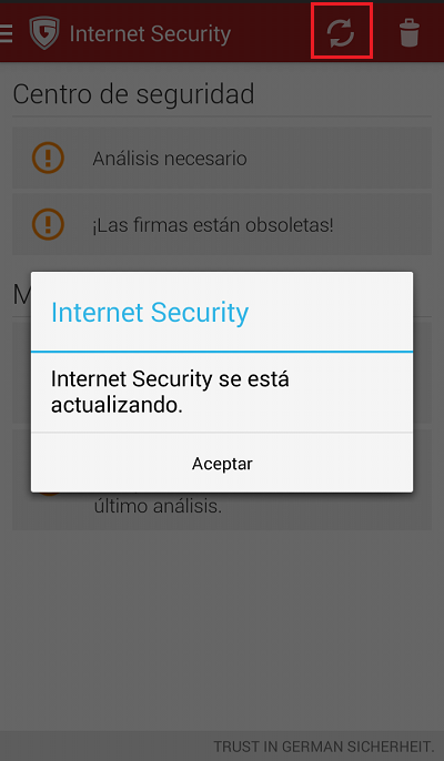 Paso 6. A continuación lleve a cabo una actualización de las firmas de virus tocando en el símbolo de las flechas circulares