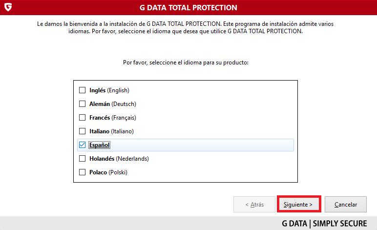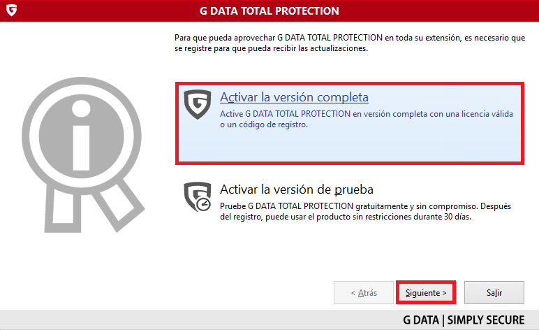 Paso 1. Descarga la última versión de su producto G DATA siguiendo este enlace:
