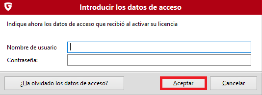 Paso 9. Introduzca en la nueva ventana sus "Datos de acceso" y haga clic en "Aceptar".
