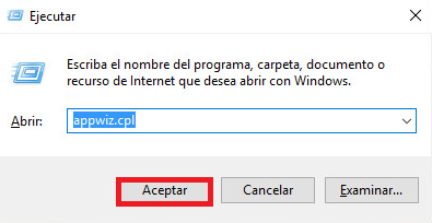 Este proceso abre la ventana "Ejecutar". Una vez allí appwiz.cpl y haga clic en “Aceptar”.