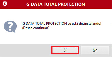 Paso 5. Confirmar la eliminación de su producto de G DATA haciendo clic en sí.