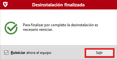 Paso 8. Su producto G DATA ha sido completamente eliminado de su sistema.