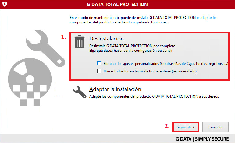 Usted puede eliminar su producto G DATA de su ordenador de dos maneras diferentes.
