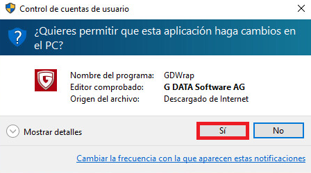Paso 2. Es probable que el Control de cuentas de usuario de Windows le pregunte, si (¿Quiere permitir que esta aplicación haga cambios en el PC?). Confirmar este mensaje haciendo clic en Sí.