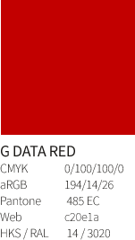 Colours support brand recognition. Please use this colour palette whenever you create materials with reference to G DATA.