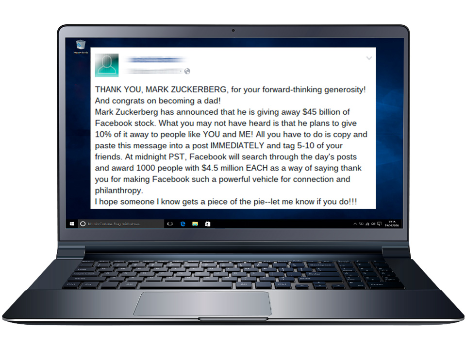 Los hoax se propagan rápidamente en Facebook. Muchos usuarios de Facebook son buenos multiplicadores de este tipo de mensajes.