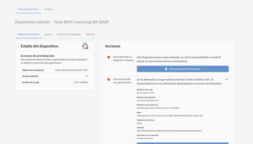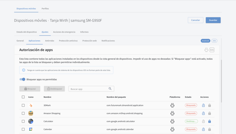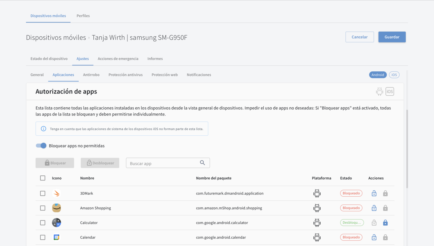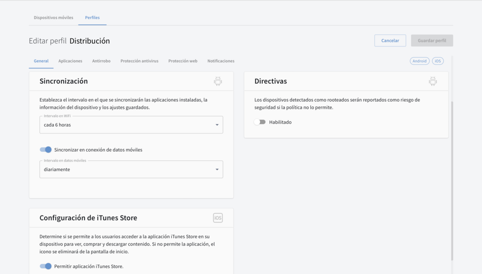 Gracias a la Mobile Device Management (MDM), tanto usted como sus gerentes de TI recuperarán de nuevo el control del panorama de los dispositivos móviles de la empresa. Nuestra solución MDM está repleta de funciones inteligentes y centralizadas, incluyendo antivirus y antirrobo, que permiten a su departamento de TI administrar de forma eficaz y segura sus dispositivos móviles iOS y Android en cumplimiento de las políticas de protección de datos actuales.