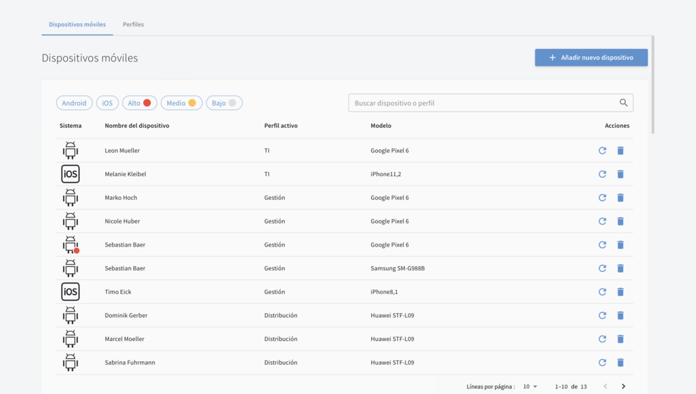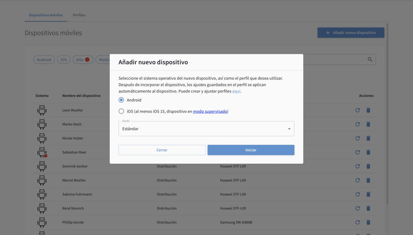 Maneje de forma centralizada y desde el panel de control tanto los dispositivos móviles como cualquier otro cliente. Aproveche la práctica vista de árbol que le permite asignar derechos de acceso y perfiles individuales a los dispositivos móviles.